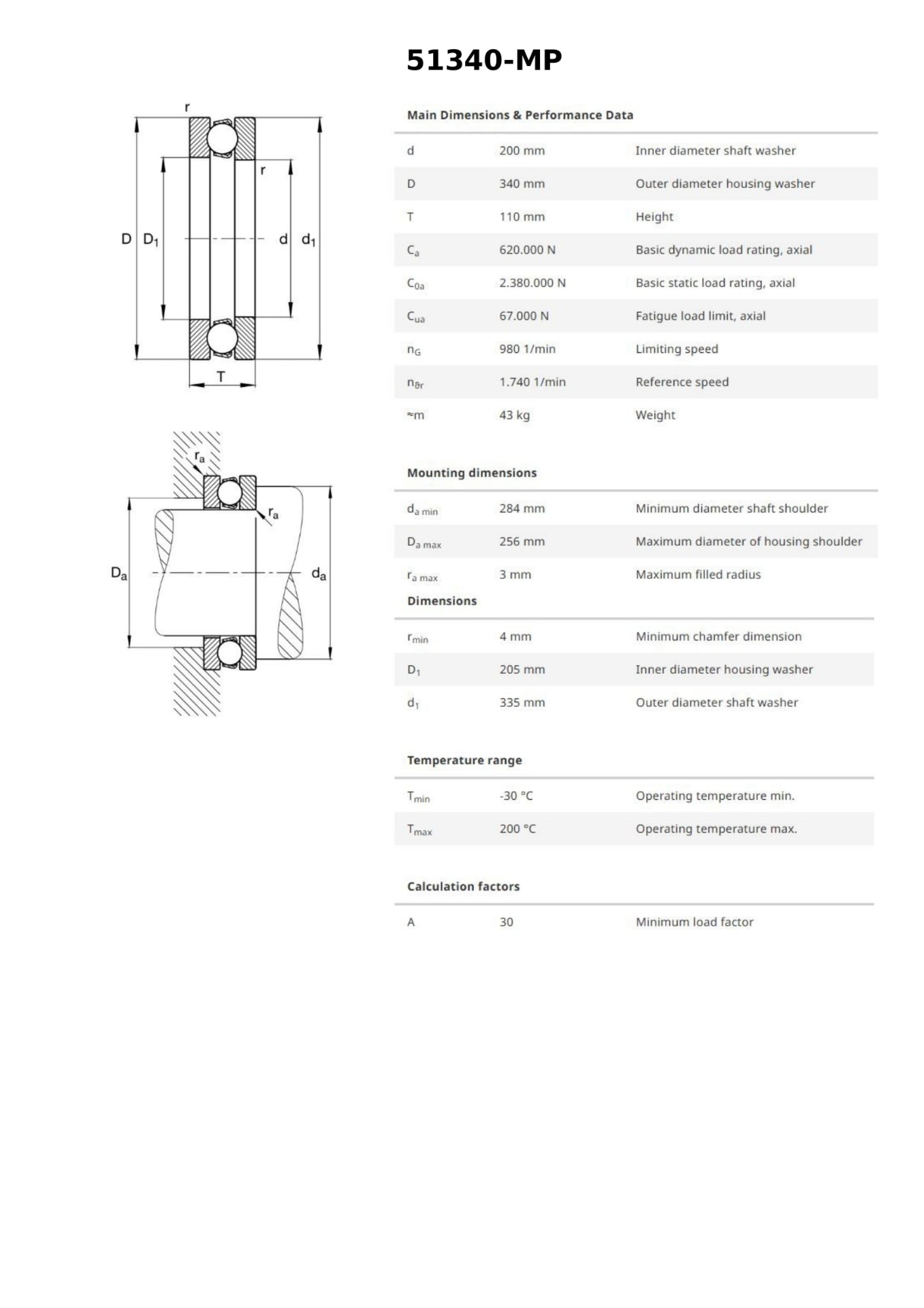 51340-MP - rulment axial cu bile, cu simplu efect, cu colivie din alama - MP.